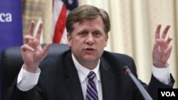 El enviado de Washington no es un diplomático de carrera, sino un especialista en la URSS y Rusia, que ha impartido la docencia en el área de ciencias políticas en la Universidad de Stanford. McFaul ha participado en proyectos sobre democracia en Irán e impartió docencia como profesor de ciencias políticas en la Universidad de Stanford. Sus obras fundamentales han sido dedicadas a las transformaciones democráticas en aquella zona que una vez formó la URSS. Ha publicado La revolución naranja: los orígenes del avance democrático en Ucrania (2006), Entre dictadura y democracia: las reformas políticas en la Rusia poscomunista (2004); Después de la caída del comunismo: lecciones comparativas de transiciones (2004); La elección popular y la democracia administrada: elecciones rusas de 1999 y 2000 (2003); Rusia revolución inconclusa: cambio político de Gorbachov a Putin (2001); y La privatización, conversión y la reformas empresariales en Rusia (1995).