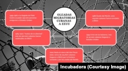 La primera estuvo comprendida entre 1959 y 1962, y salieron unos 250.000 cubanos del país. La segunda se conoció como los »Vuelos de la Libertad» o “Éxodo de Camarioca”[2], en alusión al puerto en Matanzas ―al occidente del país― por donde salieron unas 300.000 personas entre 1965 y 1973. La tercera fue en 1980 y se conoce como “Éxodo del Mariel”, en la que 125.000 personas abandonaron la isla, la cuarta fue la “Crisis de los balseros”, en 1994, con la salida de 30.000 cubanos que en primera instancia fueron ubicados en Guántanamo y a posteriori en EEUU, y la quinta y última hasta el momento ―según datos de la oficina de Aduanas y Protección Fronteriza de EEUU (CBP)―, es la que ha permitido que al menos 224.607 cubanos llegaran a EEUU principalmente por la frontera suroreste (con México).